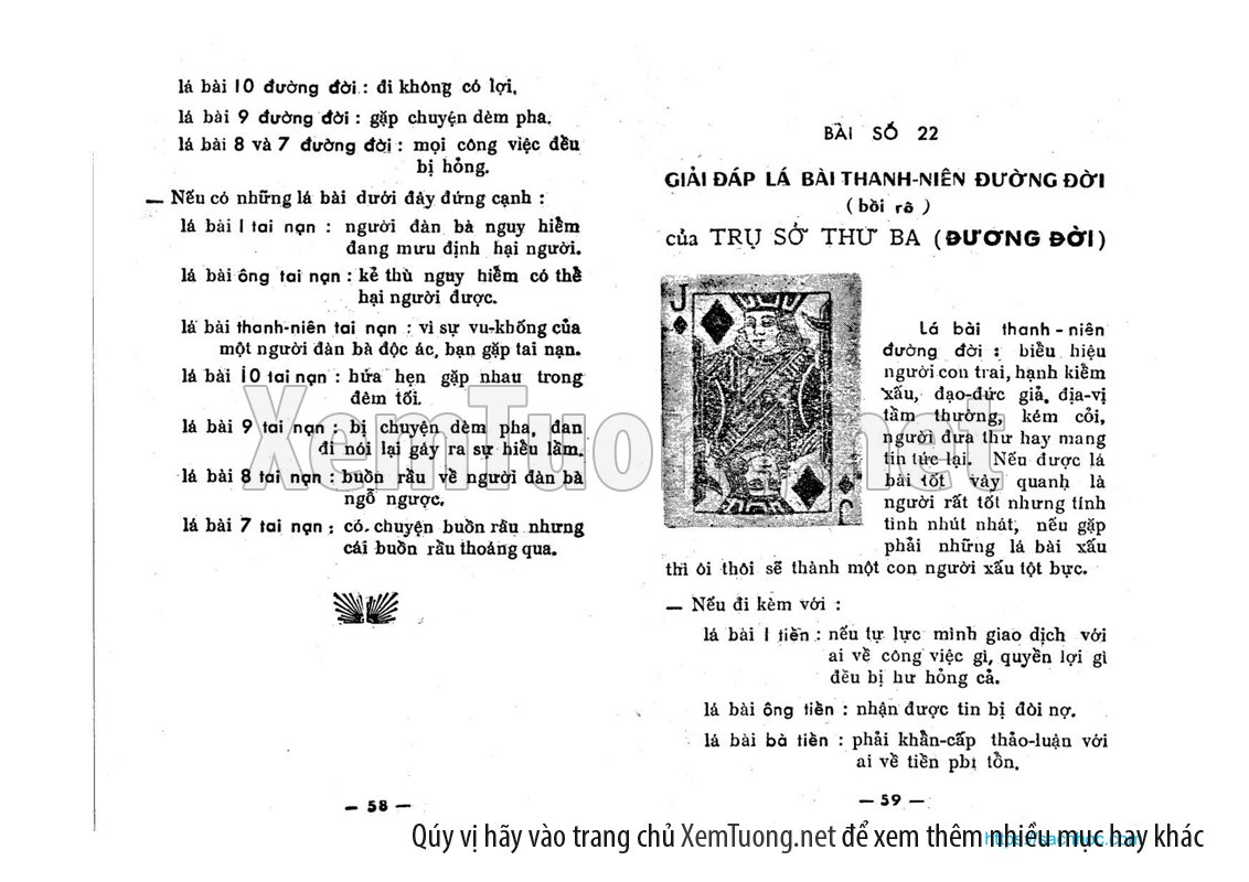 Một lá bài, tức lá bài thứ 31 tượng trưng cho người xem, còn lá bài còn lại tức lá bài thứ 32 tượng trưng cho vợ hay chồng. Nếu chưa có chồng hoặc vợ thì lá bài thứ 32 có thể tượng trưng cho người yêu của người xem.
