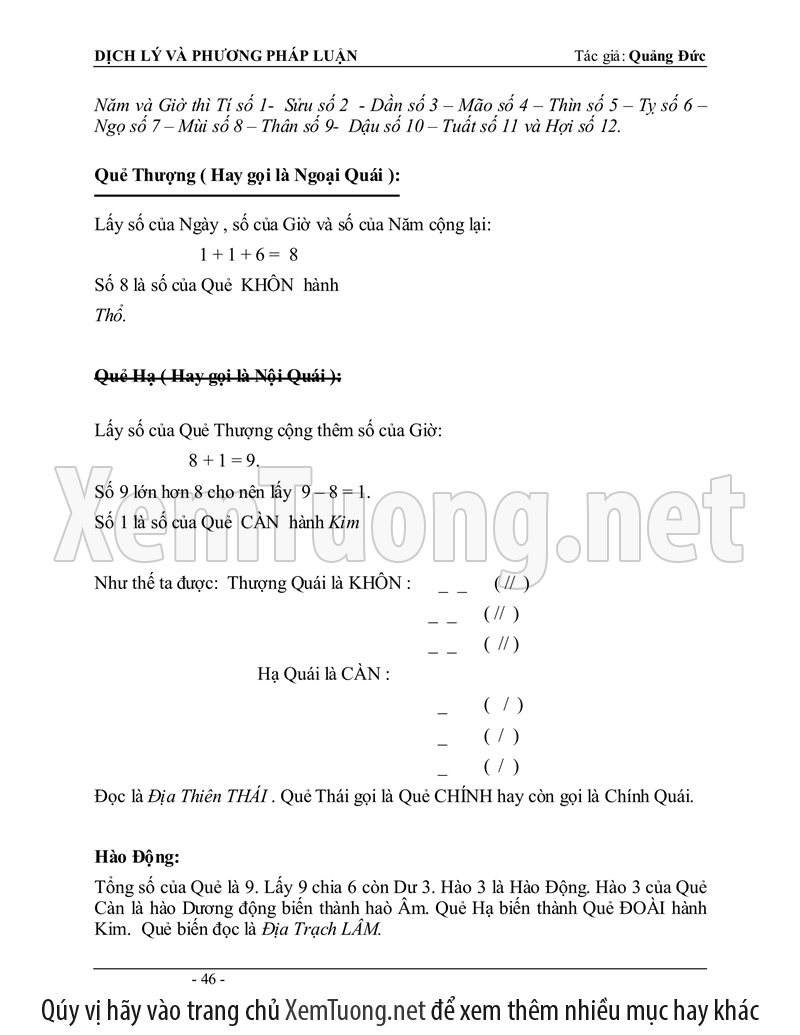Sách "Dịch lý và phương pháp luận" của tác giả Quảng Đức được tóm soạn vào năm 1980 mới đầu dùng để làm tài liệu hướng dẫn các lớp Dịch học tại Việt Nam, tổ chức riêng lẻ tại Nha Trang. Thành phần tham dự đều là các tu sĩ Phật Giáo cho nên phần đầu căn bản về Âm Dương, Ngũ hành sinh khắc hầu hết đã thấu triệt, chỉ đi thêm sâu vào phần phương pháp luận đoán.