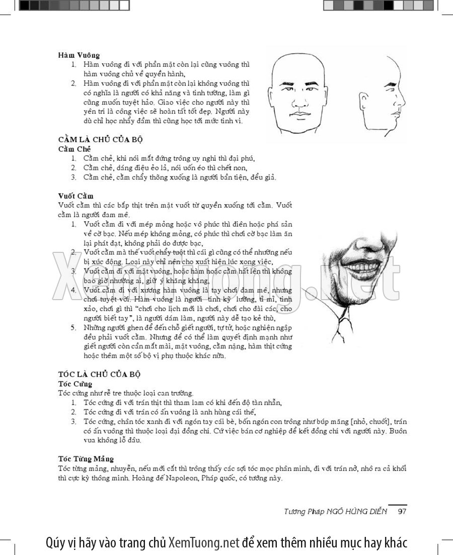 Ưu điểm của tướng pháp Ngô Hùng Diễn là các tướng pháp luật. Tinh thông những tướng pháp luật này, người nghiên cứu nhân tướng có thể luận giải nhiều đề tài trong “cõi nhân sinh” một cách rất “thần tình”. Vì vậy mà đã có người gọi Cụ Ngô Hùng Diễn là thày “Ma-xó”, có người xưng tụng Cụ là “Thần”, là “Thánh”, hay rõ ràng hơn, đặt cho Cụ danh hiệu “Thiên Linh Sư”. Danh xưng nào, nếu quá đáng, Cụ đều xin tha, đừng gọi như vậy.