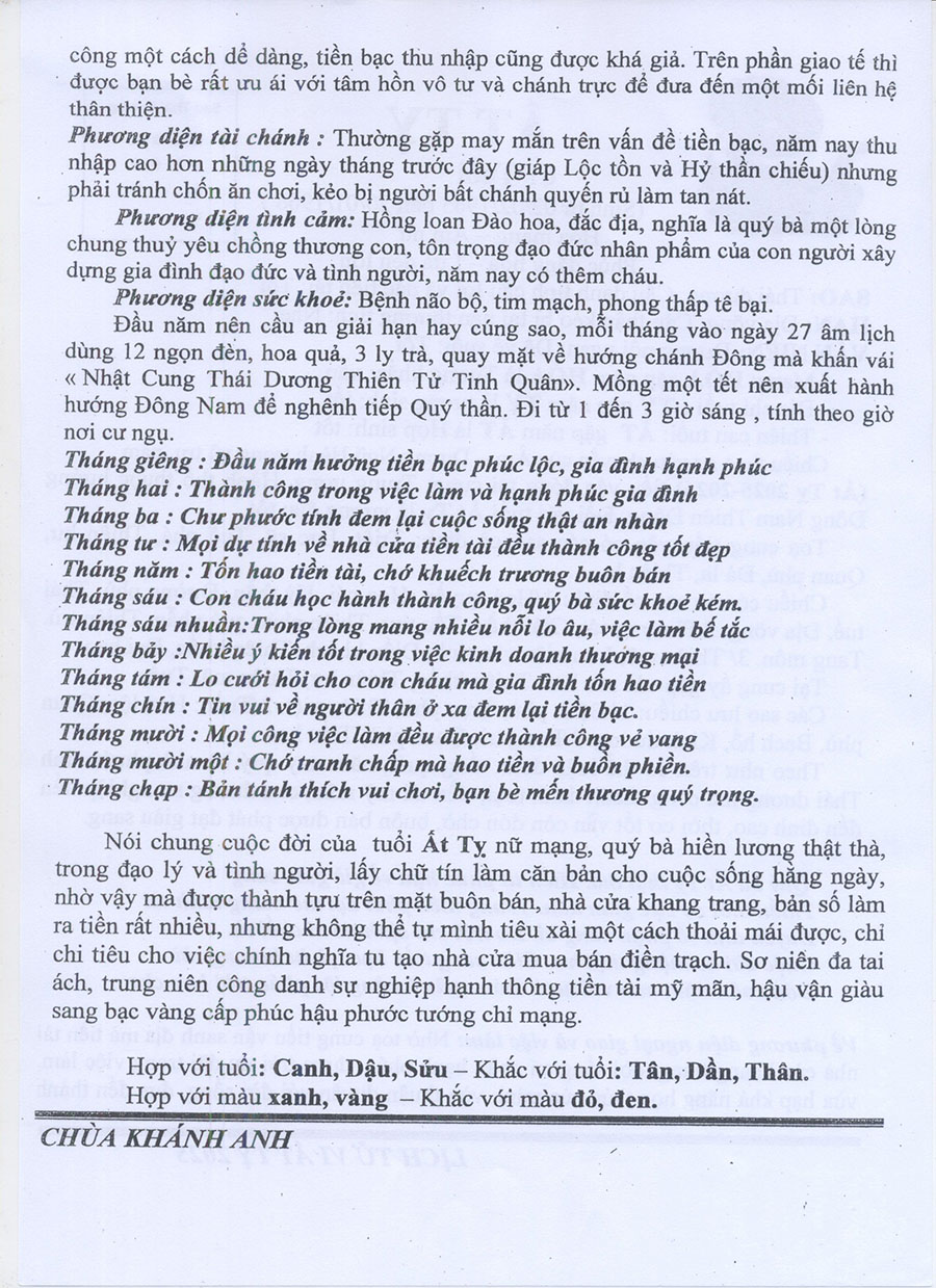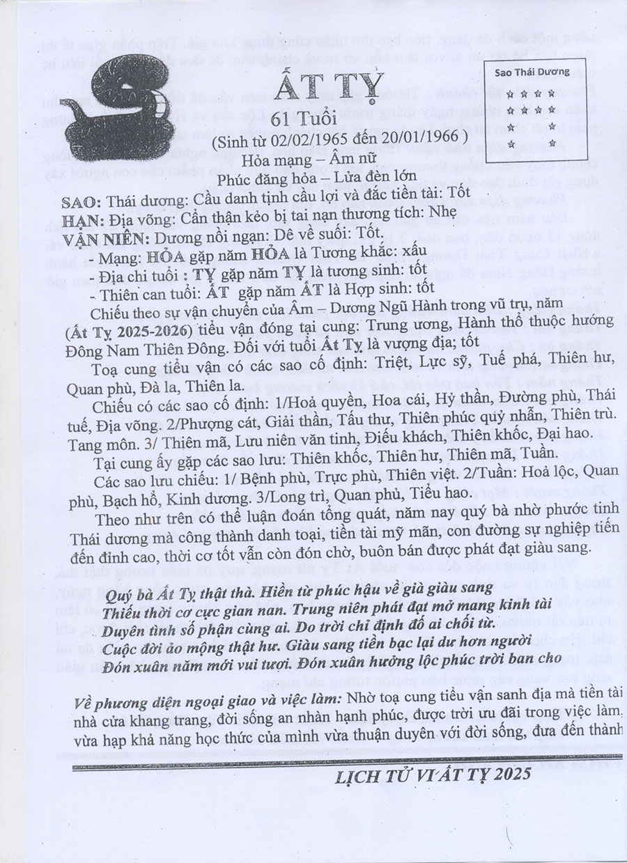 Tử Vi Năm Ất Tỵ 2025 mạng nữ ẤT TỴ