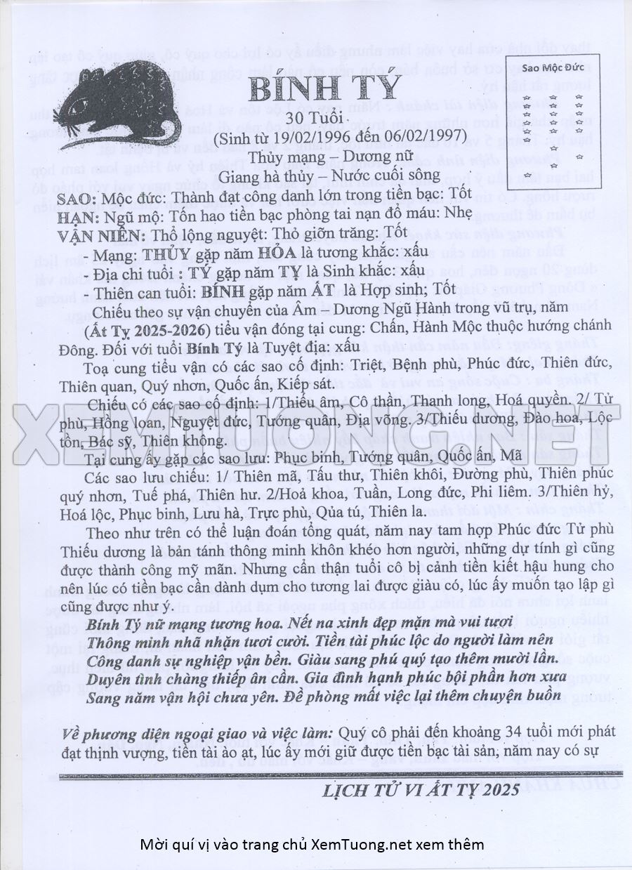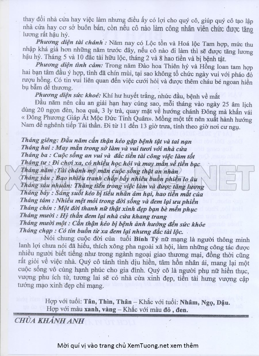 Tử Vi Năm Ất Tỵ 2025 mạng nữ BÍNH TÝ