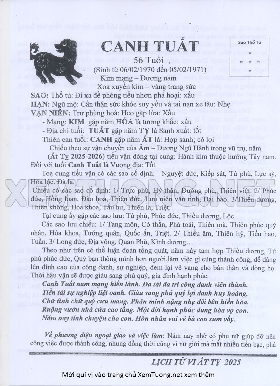 Tử Vi Năm Ất Tỵ 2025 mạng nam CANH TUẤT