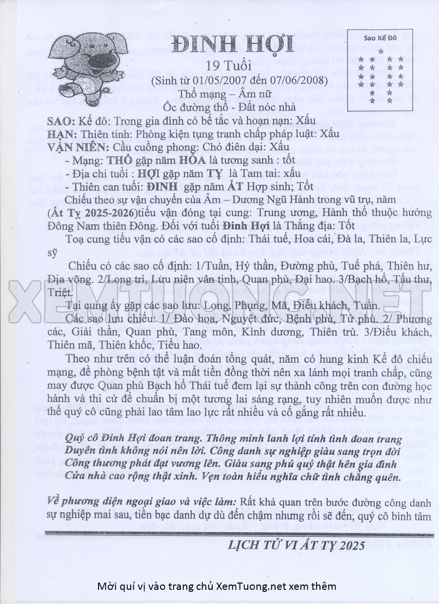 Tử Vi Năm Ất Tỵ 2025 mạng nữ ĐINH HỢI