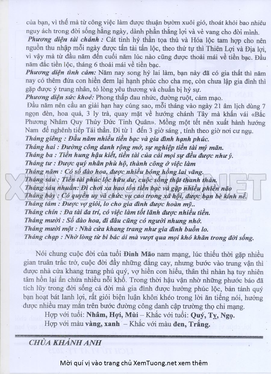 Tử Vi Năm Ất Tỵ 2025 mạng nam ĐINH MÃO