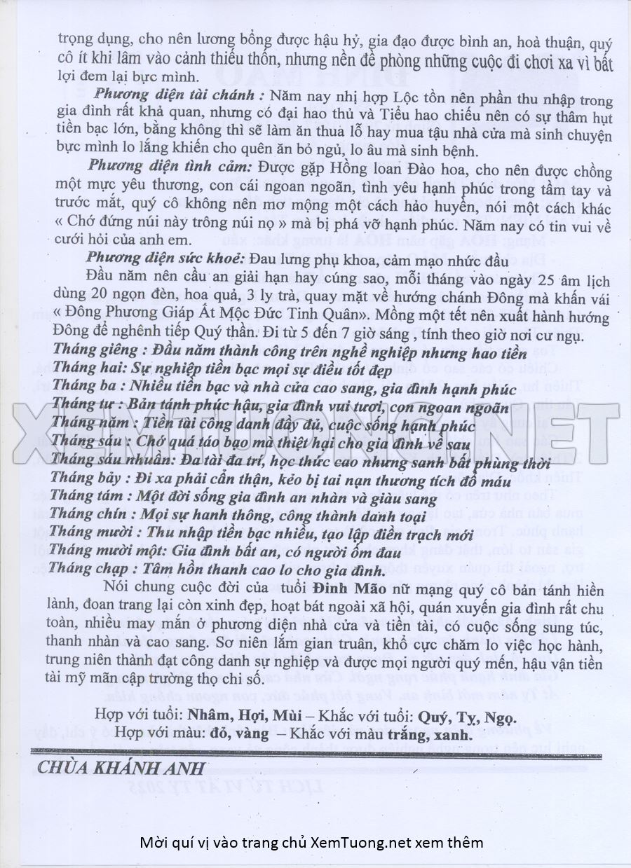 Tử Vi Năm Ất Tỵ 2025 mạng nữ Đinh MÃO