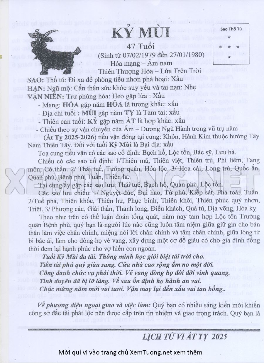 Tử Vi Năm Ất Tỵ 2025 mạng nam KỶ MÙI