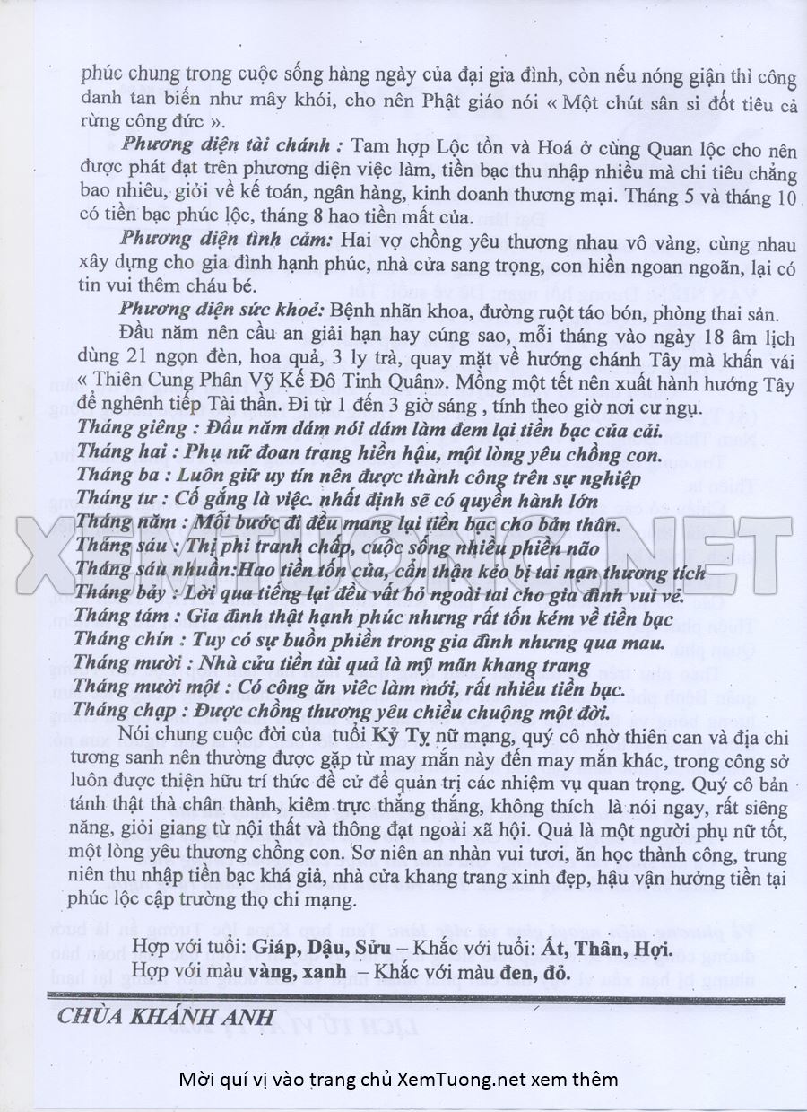 Tử Vi Năm Ất Tỵ 2025 mạng nữ KỶ TỴ