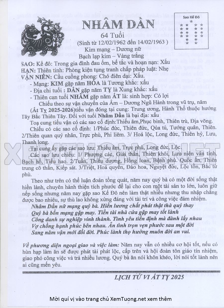 Tử Vi Năm Ất Tỵ 2025 mạng nữ NHÂM DẦN