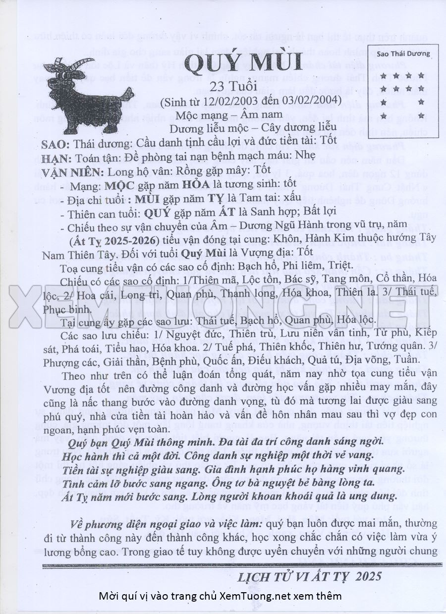 Tử Vi Năm Ất Tỵ 2025 mạng nam Qúy Mùi