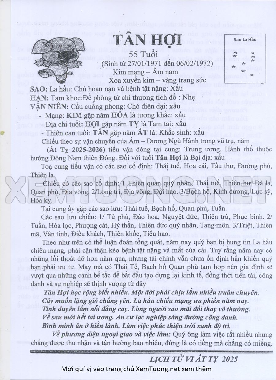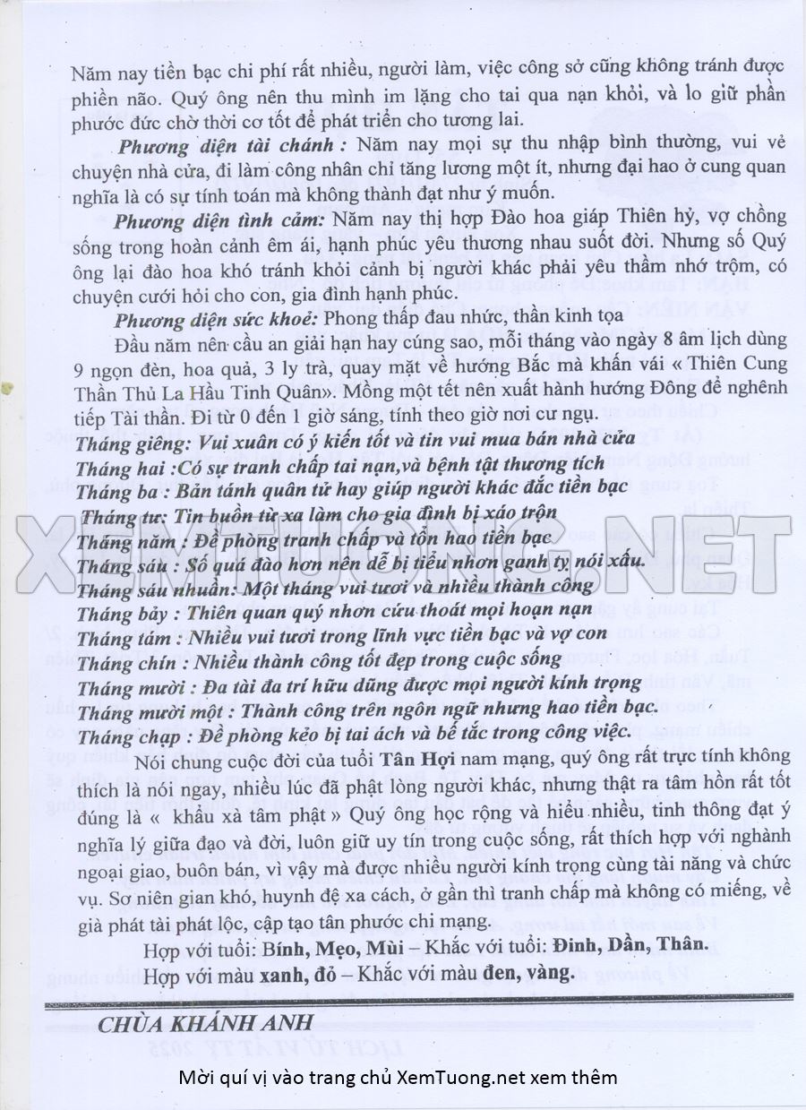 Tử Vi Năm Ất Tỵ 2025 mạng nam TÂN HỢI