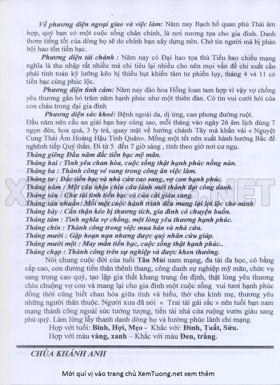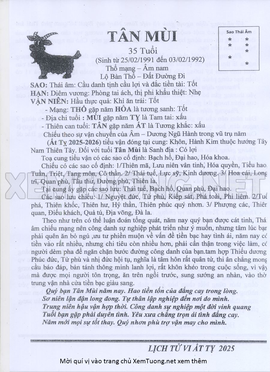 Tử Vi Năm Ất Tỵ 2025 mạng nam TÂN MÙI