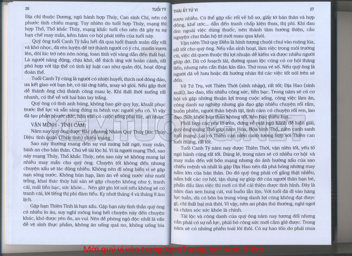 (Lưu ý: Thái Ất Tử Vi được chúng tôi scan từ sách, do đó mỗi tuổi sẽ có nhiều trang, quý vị xem xong hãy nhấn vào trang tiếp theo để xem hết phần tuổi muốn xem. Nếu quý vị xem bằng điện thoại thì hãy kéo qua lại để xem phần bị khuất.)