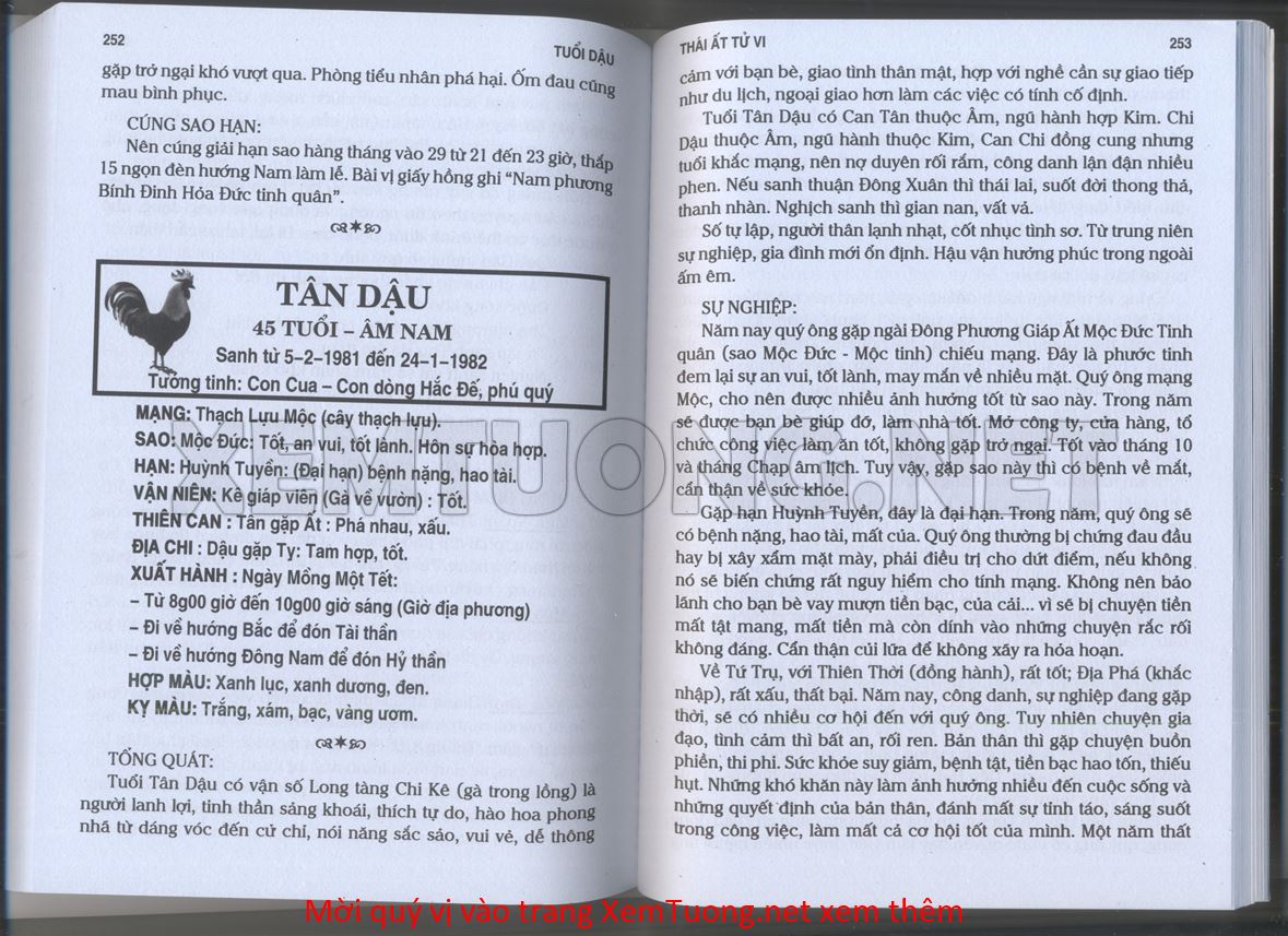 (Lưu ý: Thái Ất Tử Vi được chúng tôi scan từ sách, do đó mỗi tuổi sẽ có nhiều trang, quý vị xem xong hãy nhấn vào trang tiếp theo để xem hết phần tuổi muốn xem. Nếu quý vị xem bằng điện thoại thì hãy kéo qua lại để xem phần bị khuất.)