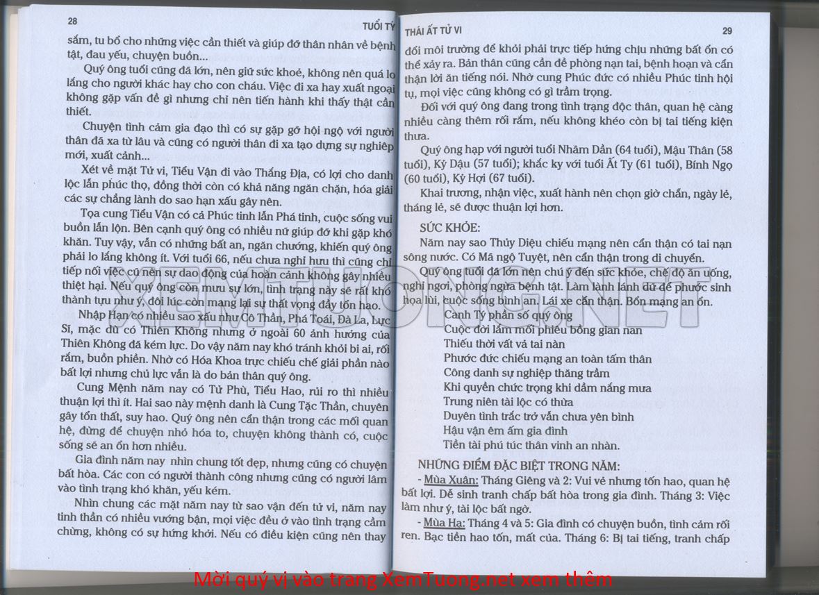 (Lưu ý: Thái Ất Tử Vi được chúng tôi scan từ sách, do đó mỗi tuổi sẽ có nhiều trang, quý vị xem xong hãy nhấn vào trang tiếp theo để xem hết phần tuổi muốn xem. Nếu quý vị xem bằng điện thoại thì hãy kéo qua lại để xem phần bị khuất.)