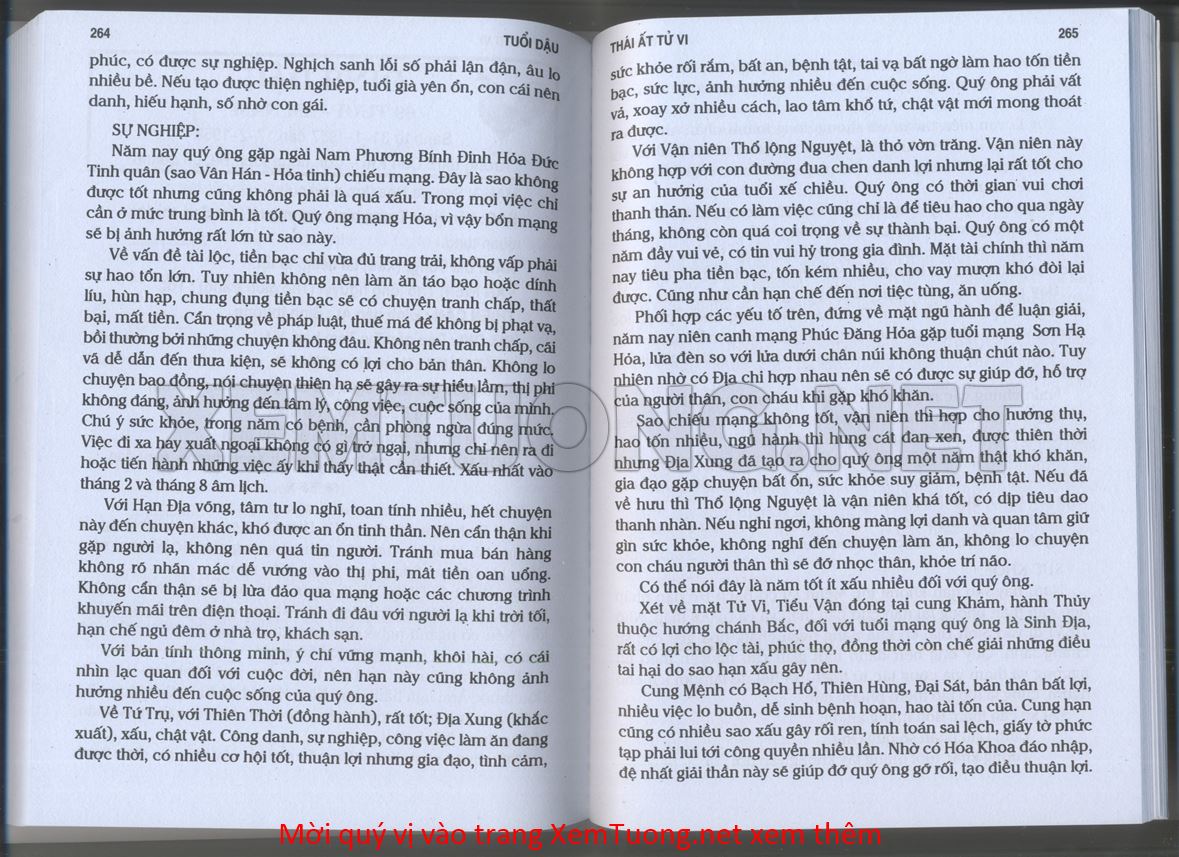 (Lưu ý: Thái Ất Tử Vi được chúng tôi scan từ sách, do đó mỗi tuổi sẽ có nhiều trang, quý vị xem xong hãy nhấn vào trang tiếp theo để xem hết phần tuổi muốn xem. Nếu quý vị xem bằng điện thoại thì hãy kéo qua lại để xem phần bị khuất.)