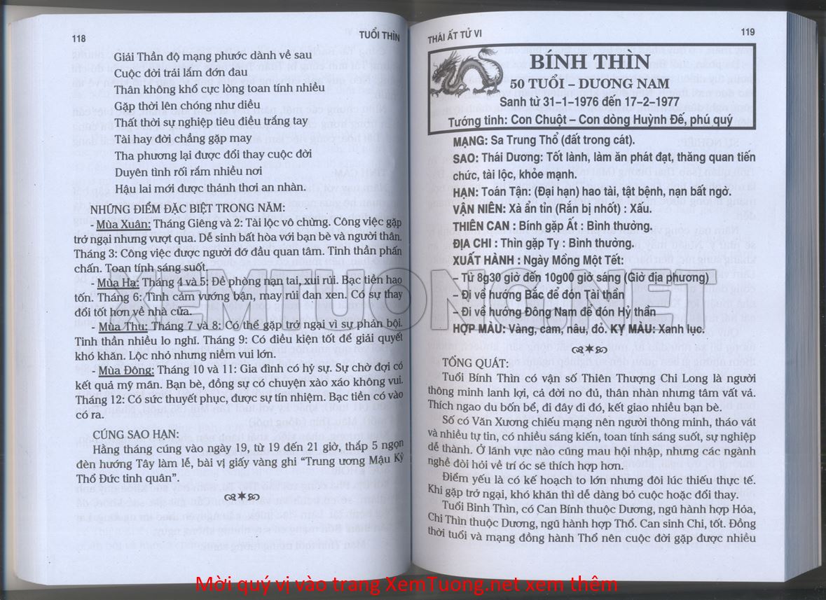 (Lưu ý: Thái Ất Tử Vi được chúng tôi scan từ sách, do đó mỗi tuổi sẽ có nhiều trang, quý vị xem xong hãy nhấn vào trang tiếp theo để xem hết phần tuổi muốn xem. Nếu quý vị xem bằng điện thoại thì hãy kéo qua lại để xem phần bị khuất.)