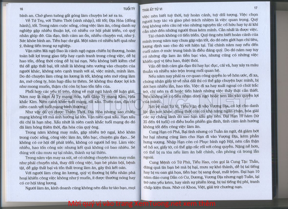 (Lưu ý: Thái Ất Tử Vi được chúng tôi scan từ sách, do đó mỗi tuổi sẽ có nhiều trang, quý vị xem xong hãy nhấn vào trang tiếp theo để xem hết phần tuổi muốn xem. Nếu quý vị xem bằng điện thoại thì hãy kéo qua lại để xem phần bị khuất.)