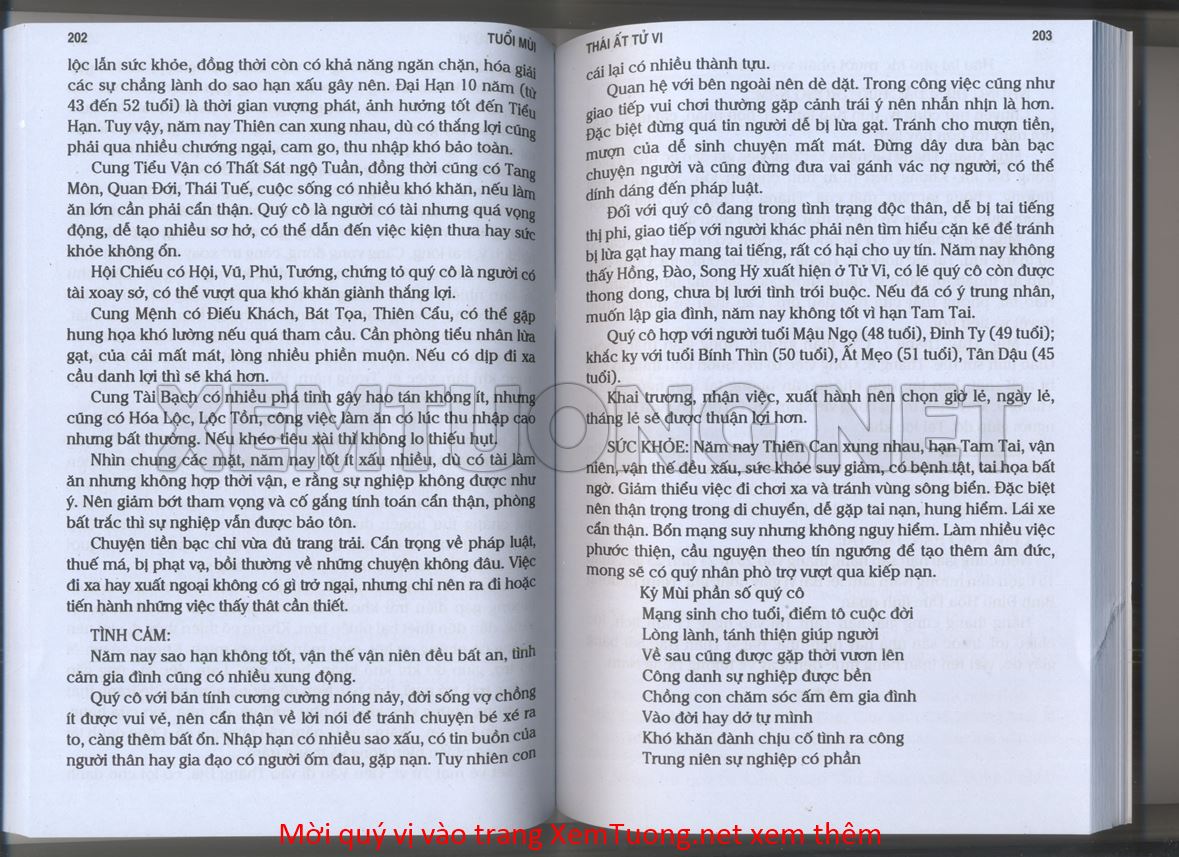 (Lưu ý: Thái Ất Tử Vi được chúng tôi scan từ sách, do đó mỗi tuổi sẽ có nhiều trang, quý vị xem xong hãy nhấn vào trang tiếp theo để xem hết phần tuổi muốn xem. Nếu quý vị xem bằng điện thoại thì hãy kéo qua lại để xem phần bị khuất.)
