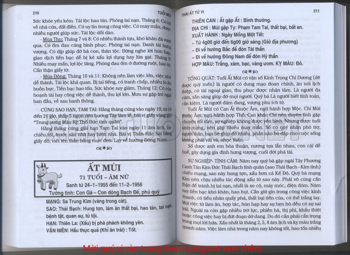 (Lưu ý: Thái Ất Tử Vi được chúng tôi scan từ sách, do đó mỗi tuổi sẽ có nhiều trang, quý vị xem xong hãy nhấn vào trang tiếp theo để xem hết phần tuổi muốn xem. Nếu quý vị xem bằng điện thoại thì hãy kéo qua lại để xem phần bị khuất.)