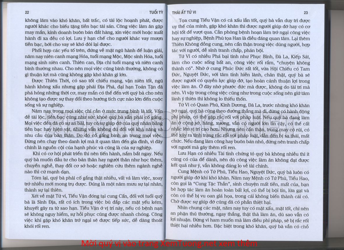 (Lưu ý: Thái Ất Tử Vi được chúng tôi scan từ sách, do đó mỗi tuổi sẽ có nhiều trang, quý vị xem xong hãy nhấn vào trang tiếp theo để xem hết phần tuổi muốn xem. Nếu quý vị xem bằng điện thoại thì hãy kéo qua lại để xem phần bị khuất.)