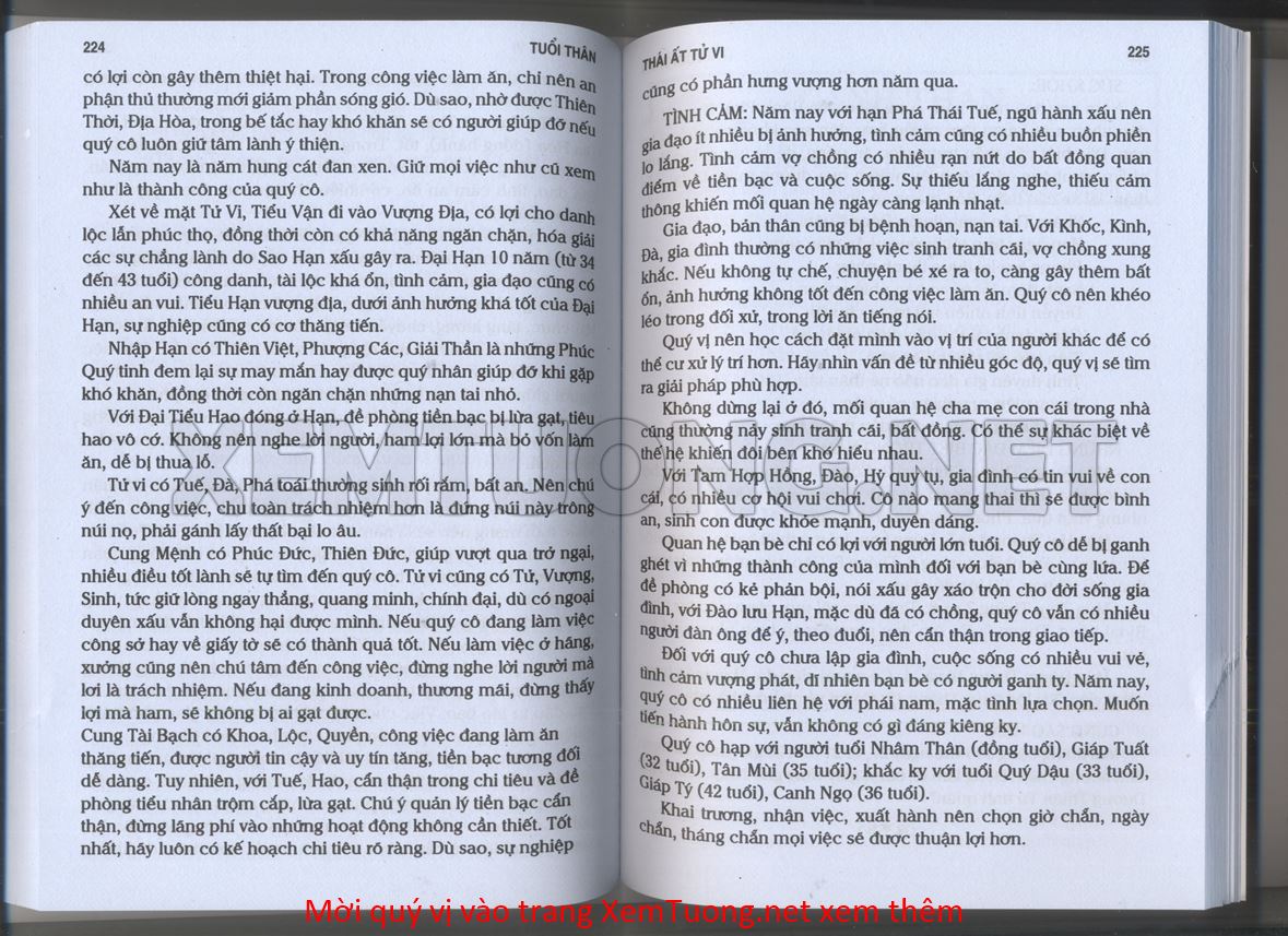 (Lưu ý: Thái Ất Tử Vi được chúng tôi scan từ sách, do đó mỗi tuổi sẽ có nhiều trang, quý vị xem xong hãy nhấn vào trang tiếp theo để xem hết phần tuổi muốn xem. Nếu quý vị xem bằng điện thoại thì hãy kéo qua lại để xem phần bị khuất.)