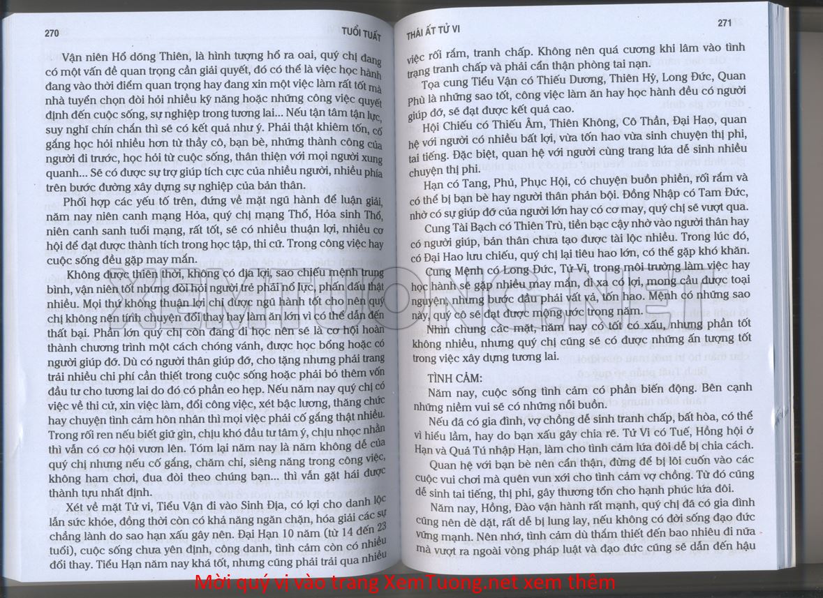 (Lưu ý: Thái Ất Tử Vi được chúng tôi scan từ sách, do đó mỗi tuổi sẽ có nhiều trang, quý vị xem xong hãy nhấn vào trang tiếp theo để xem hết phần tuổi muốn xem. Nếu quý vị xem bằng điện thoại thì hãy kéo qua lại để xem phần bị khuất.)