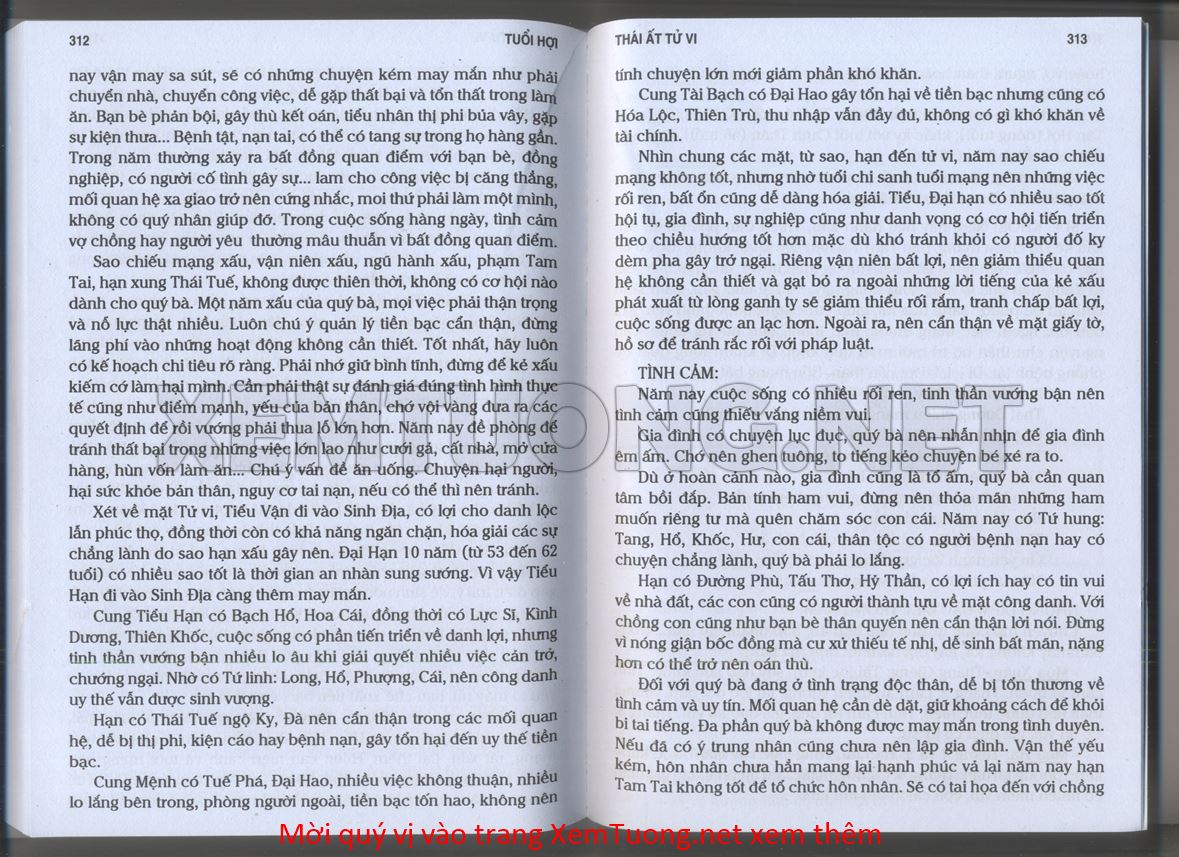 (Lưu ý: Thái Ất Tử Vi được chúng tôi scan từ sách, do đó mỗi tuổi sẽ có nhiều trang, quý vị xem xong hãy nhấn vào trang tiếp theo để xem hết phần tuổi muốn xem. Nếu quý vị xem bằng điện thoại thì hãy kéo qua lại để xem phần bị khuất.)