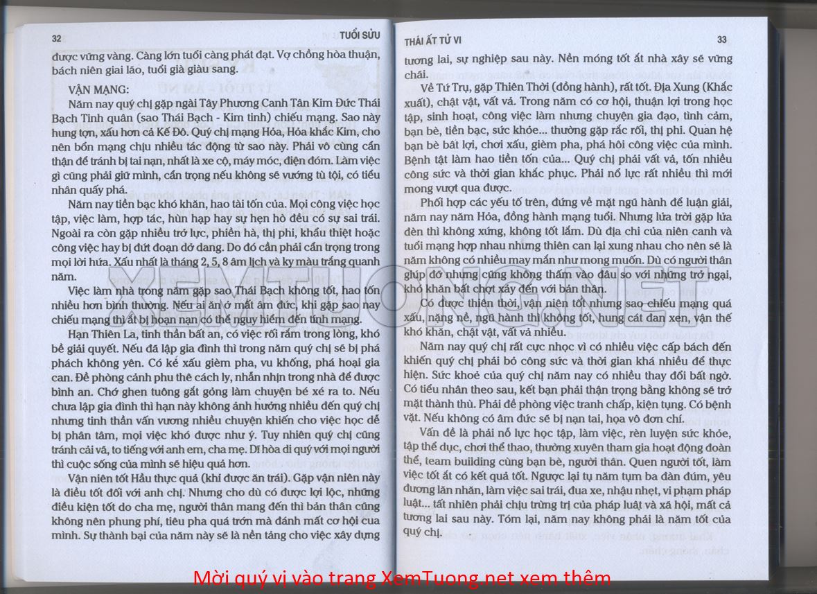 (Lưu ý: Thái Ất Tử Vi được chúng tôi scan từ sách, do đó mỗi tuổi sẽ có nhiều trang, quý vị xem xong hãy nhấn vào trang tiếp theo để xem hết phần tuổi muốn xem. Nếu quý vị xem bằng điện thoại thì hãy kéo qua lại để xem phần bị khuất.)