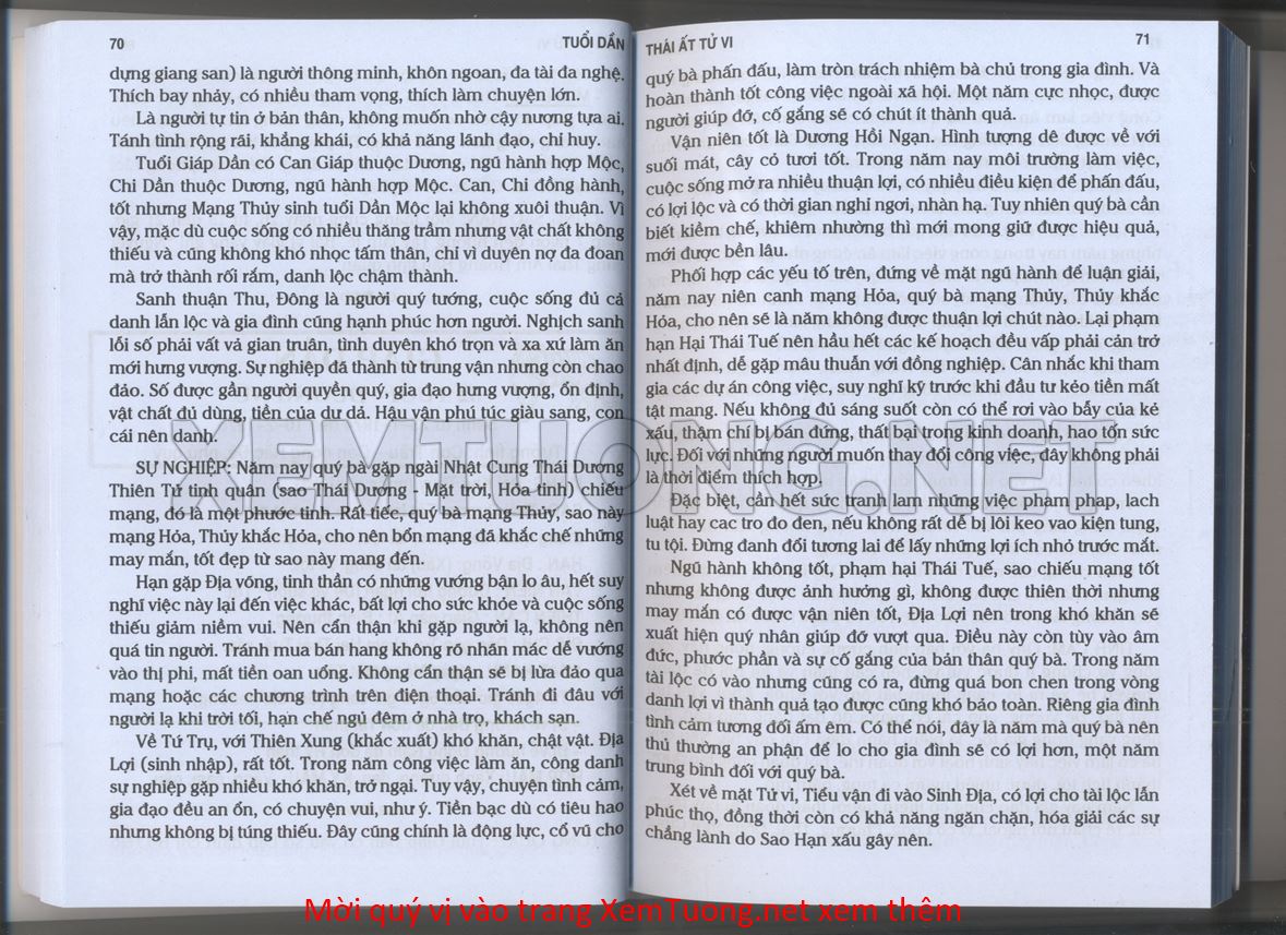 (Lưu ý: Thái Ất Tử Vi được chúng tôi scan từ sách, do đó mỗi tuổi sẽ có nhiều trang, quý vị xem xong hãy nhấn vào trang tiếp theo để xem hết phần tuổi muốn xem. Nếu quý vị xem bằng điện thoại thì hãy kéo qua lại để xem phần bị khuất.)