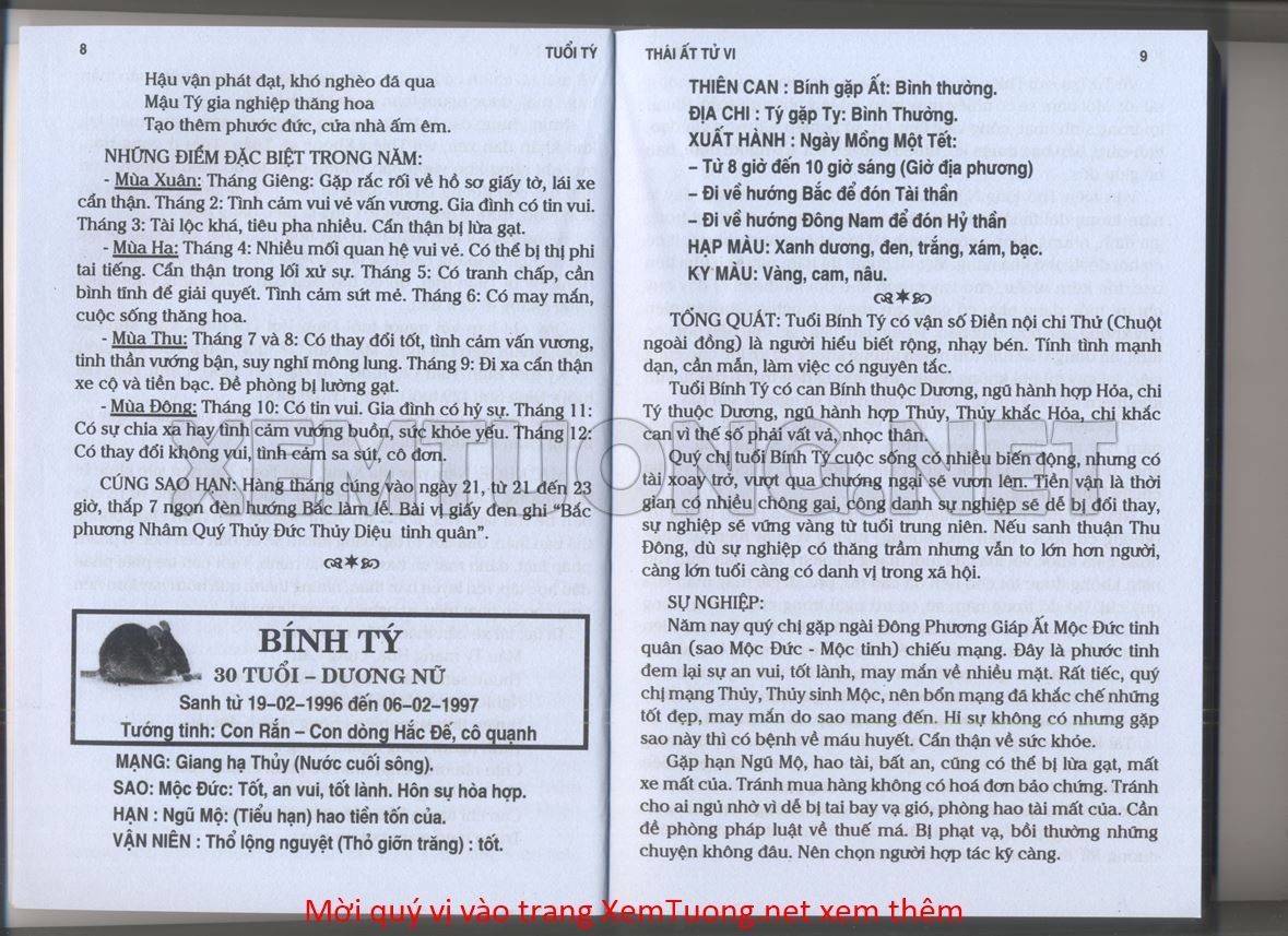 (Lưu ý: Thái Ất Tử Vi được chúng tôi scan từ sách, do đó mỗi tuổi sẽ có nhiều trang, quý vị xem xong hãy nhấn vào trang tiếp theo để xem hết phần tuổi muốn xem. Nếu quý vị xem bằng điện thoại thì hãy kéo qua lại để xem phần bị khuất.)
