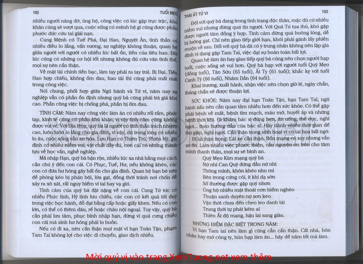 (Lưu ý: Thái Ất Tử Vi được chúng tôi scan từ sách, do đó mỗi tuổi sẽ có nhiều trang, quý vị xem xong hãy nhấn vào trang tiếp theo để xem hết phần tuổi muốn xem. Nếu quý vị xem bằng điện thoại thì hãy kéo qua lại để xem phần bị khuất.)