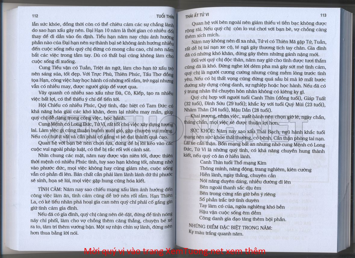 (Lưu ý: Thái Ất Tử Vi được chúng tôi scan từ sách, do đó mỗi tuổi sẽ có nhiều trang, quý vị xem xong hãy nhấn vào trang tiếp theo để xem hết phần tuổi muốn xem. Nếu quý vị xem bằng điện thoại thì hãy kéo qua lại để xem phần bị khuất.)