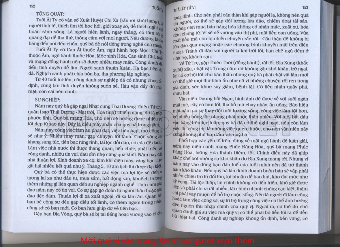 (Lưu ý: Thái Ất Tử Vi được chúng tôi scan từ sách, do đó mỗi tuổi sẽ có nhiều trang, quý vị xem xong hãy nhấn vào trang tiếp theo để xem hết phần tuổi muốn xem. Nếu quý vị xem bằng điện thoại thì hãy kéo qua lại để xem phần bị khuất.)