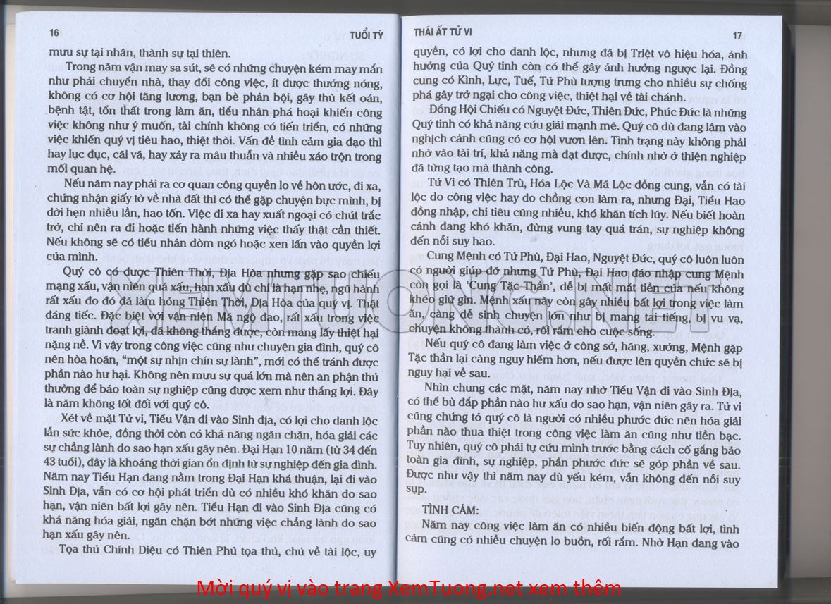 (Lưu ý: Thái Ất Tử Vi được chúng tôi scan từ sách, do đó mỗi tuổi sẽ có nhiều trang, quý vị xem xong hãy nhấn vào trang tiếp theo để xem hết phần tuổi muốn xem. Nếu quý vị xem bằng điện thoại thì hãy kéo qua lại để xem phần bị khuất.)