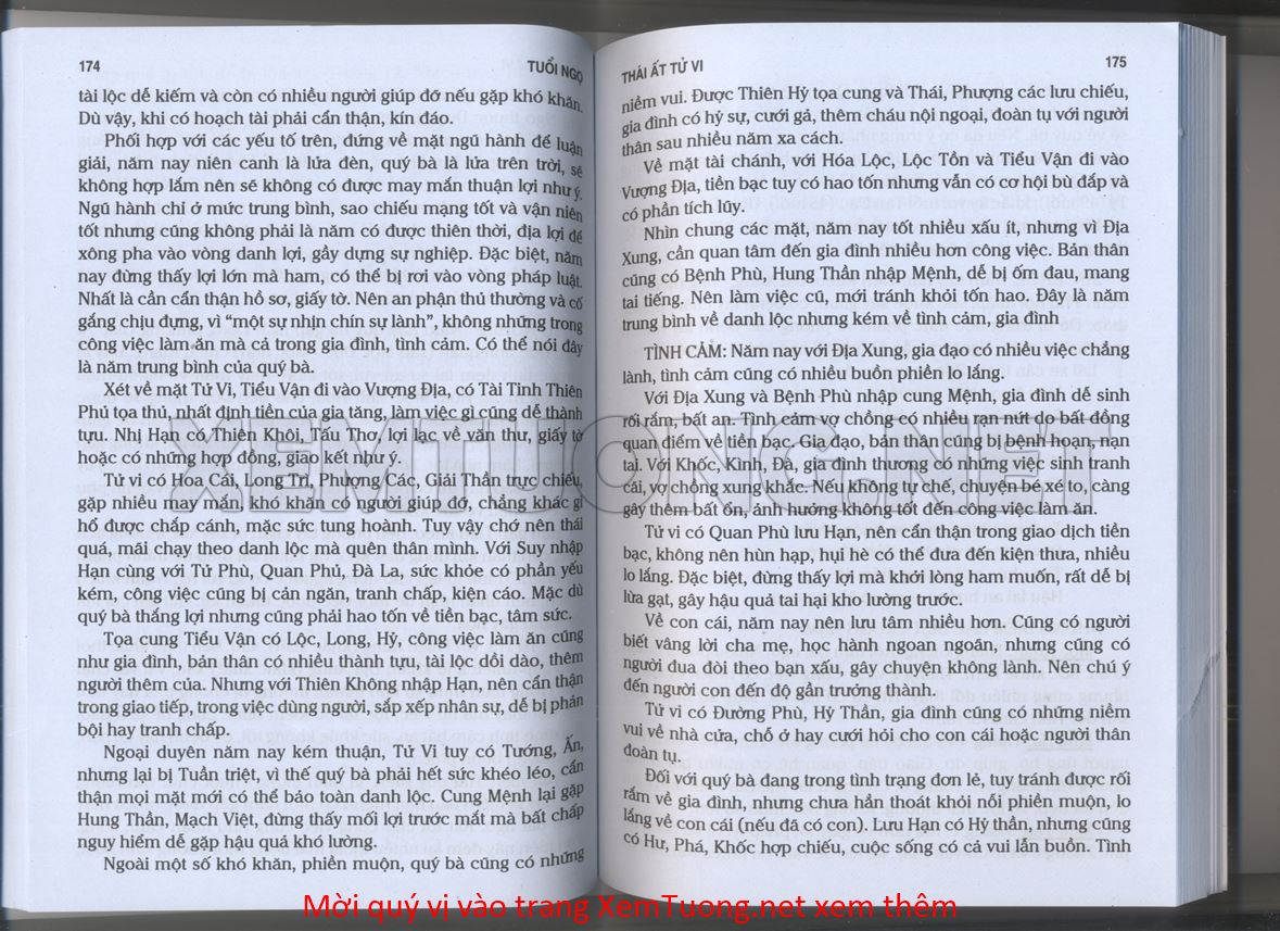 (Lưu ý: Thái Ất Tử Vi được chúng tôi scan từ sách, do đó mỗi tuổi sẽ có nhiều trang, quý vị xem xong hãy nhấn vào trang tiếp theo để xem hết phần tuổi muốn xem. Nếu quý vị xem bằng điện thoại thì hãy kéo qua lại để xem phần bị khuất.)