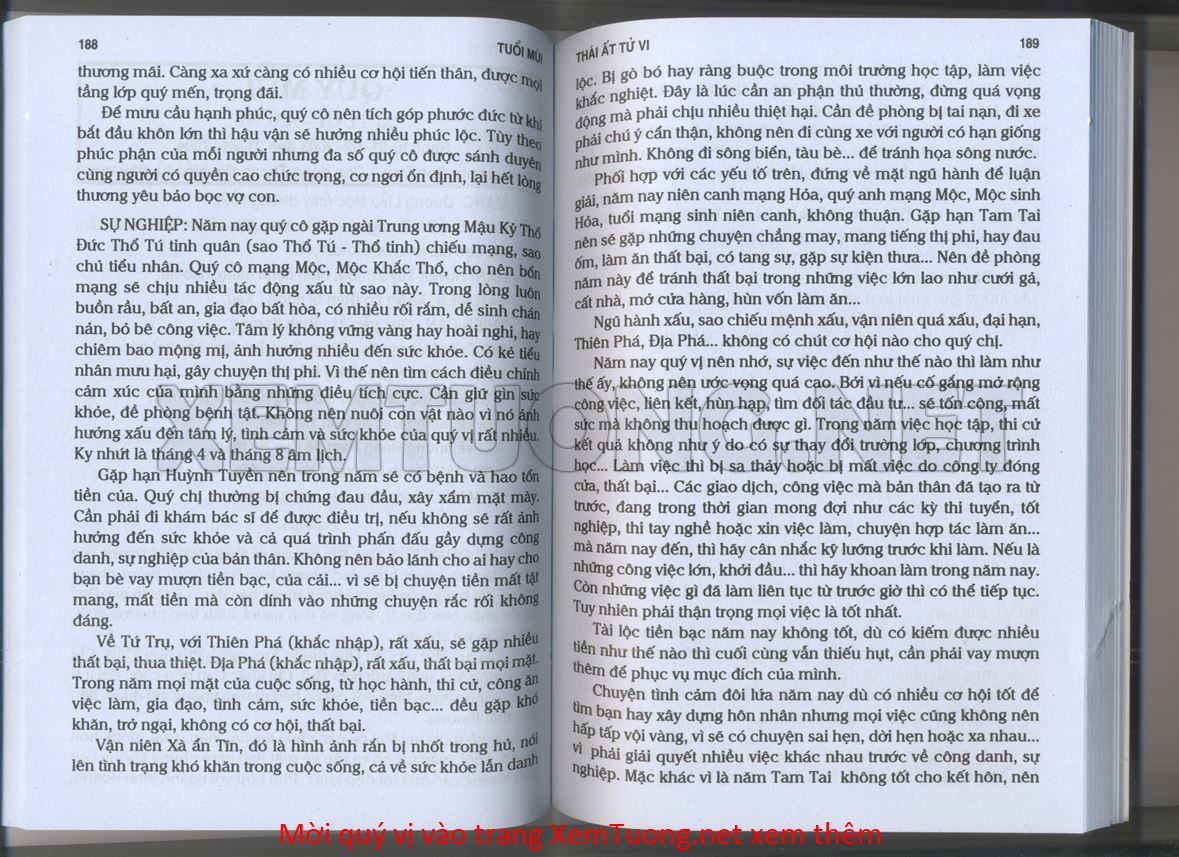 (Lưu ý: Thái Ất Tử Vi được chúng tôi scan từ sách, do đó mỗi tuổi sẽ có nhiều trang, quý vị xem xong hãy nhấn vào trang tiếp theo để xem hết phần tuổi muốn xem. Nếu quý vị xem bằng điện thoại thì hãy kéo qua lại để xem phần bị khuất.)