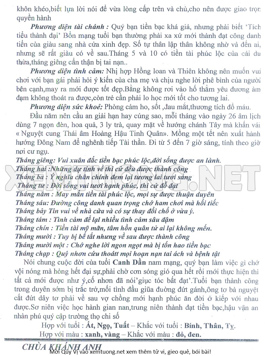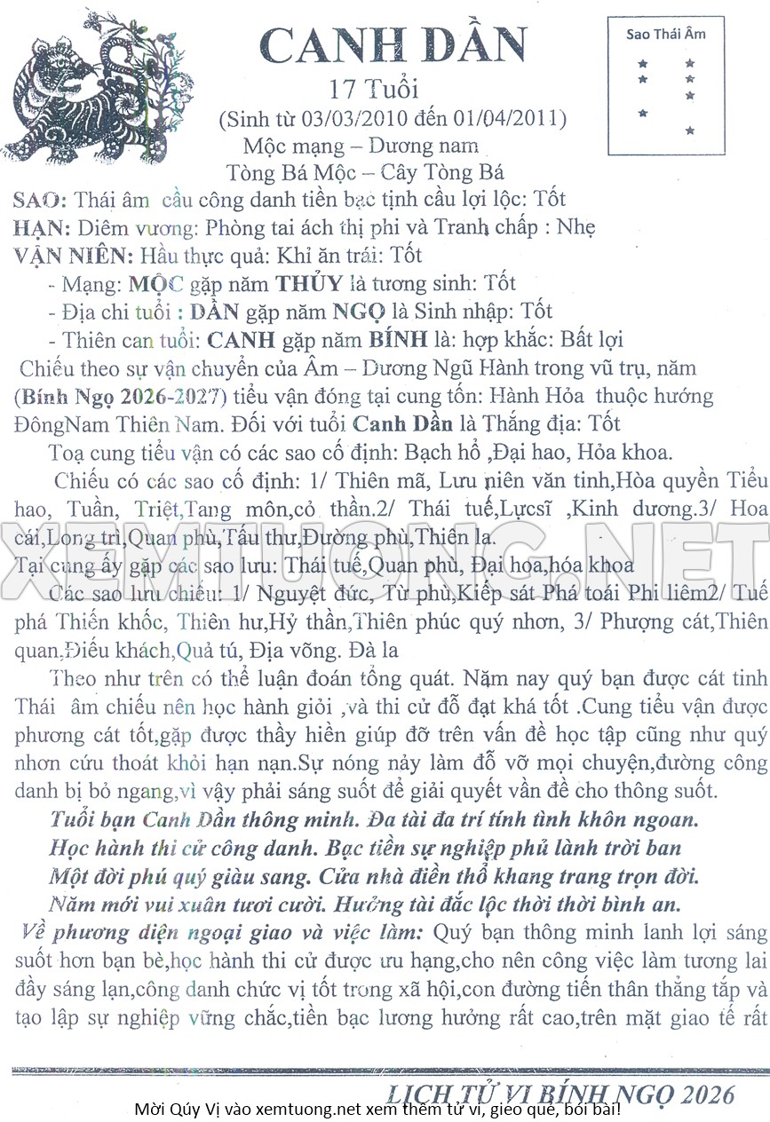 Tử Vi Năm Bính Ngọ 2026 mạng nam CANH DẦN