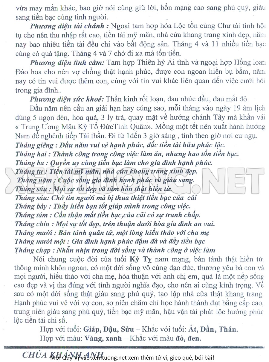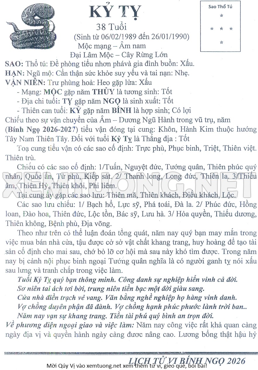 Tử Vi Năm Bính Ngọ 2026 mạng nam KỶ TỴ