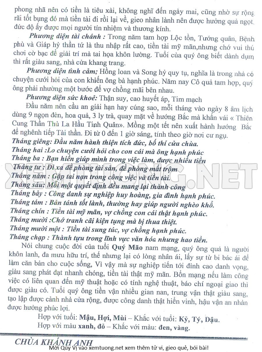 Tử Vi Năm Bính Ngọ 2026 mạng nam QUÝ MÃO