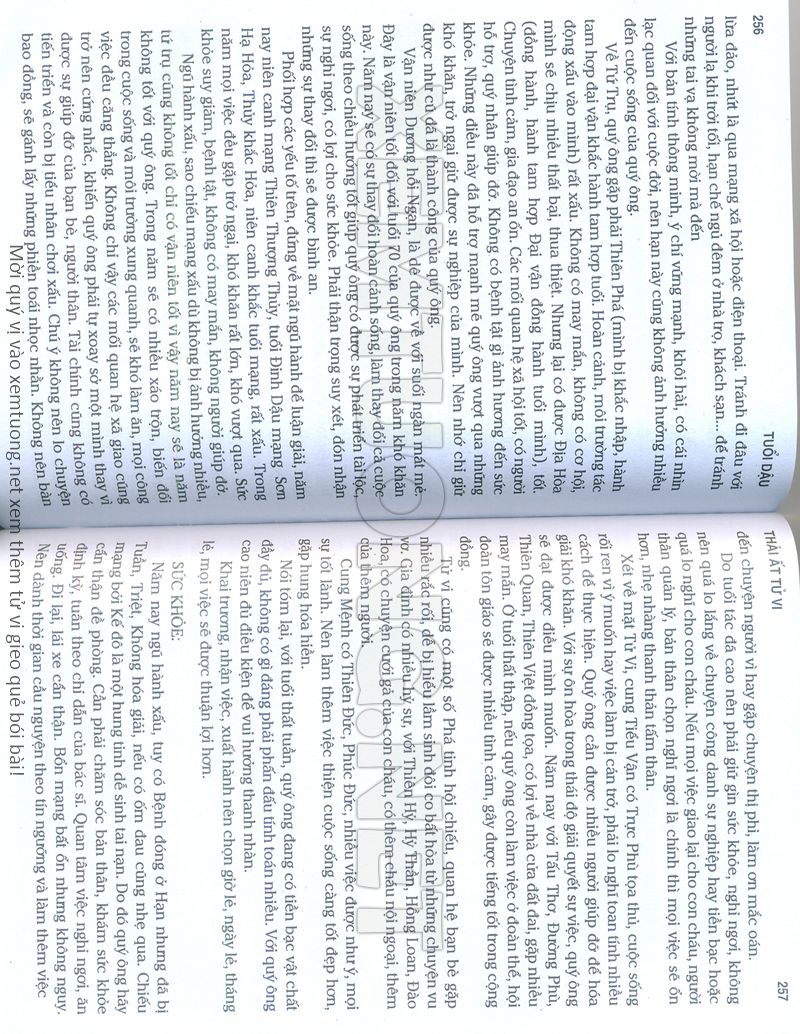 (Lưu ý: Thái Ất Tử Vi được chúng tôi scan từ sách, do đó mỗi tuổi sẽ có nhiều trang, quý vị xem xong hãy nhấn vào trang tiếp theo để xem hết phần tuổi muốn xem. Nếu quý vị xem bằng điện thoại thì hãy kéo qua lại để xem phần bị khuất.)