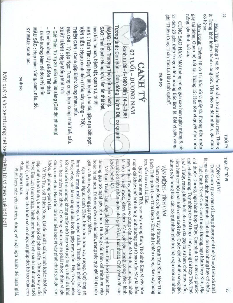 (Lưu ý: Thái Ất Tử Vi được chúng tôi scan từ sách, do đó mỗi tuổi sẽ có nhiều trang, quý vị xem xong hãy nhấn vào trang tiếp theo để xem hết phần tuổi muốn xem. Nếu quý vị xem bằng điện thoại thì hãy kéo qua lại để xem phần bị khuất.)