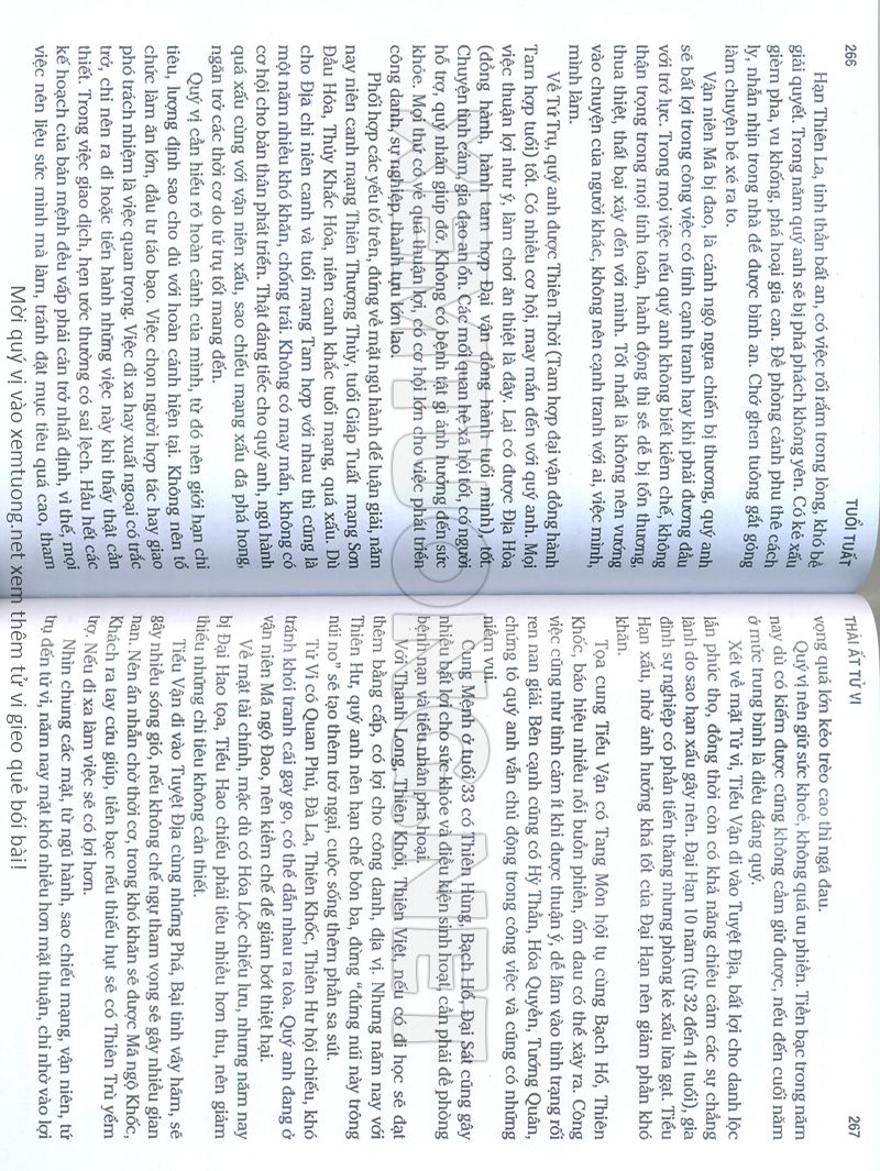 (Lưu ý: Thái Ất Tử Vi được chúng tôi scan từ sách, do đó mỗi tuổi sẽ có nhiều trang, quý vị xem xong hãy nhấn vào trang tiếp theo để xem hết phần tuổi muốn xem. Nếu quý vị xem bằng điện thoại thì hãy kéo qua lại để xem phần bị khuất.)