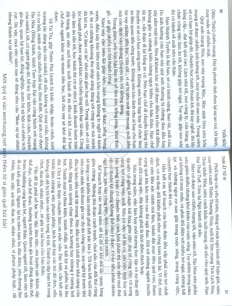 (Lưu ý: Thái Ất Tử Vi được chúng tôi scan từ sách, do đó mỗi tuổi sẽ có nhiều trang, quý vị xem xong hãy nhấn vào trang tiếp theo để xem hết phần tuổi muốn xem. Nếu quý vị xem bằng điện thoại thì hãy kéo qua lại để xem phần bị khuất.)