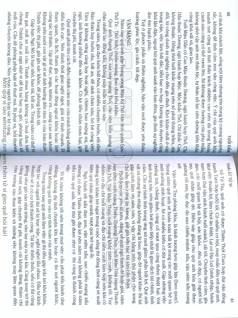 (Lưu ý: Thái Ất Tử Vi được chúng tôi scan từ sách, do đó mỗi tuổi sẽ có nhiều trang, quý vị xem xong hãy nhấn vào trang tiếp theo để xem hết phần tuổi muốn xem. Nếu quý vị xem bằng điện thoại thì hãy kéo qua lại để xem phần bị khuất.)