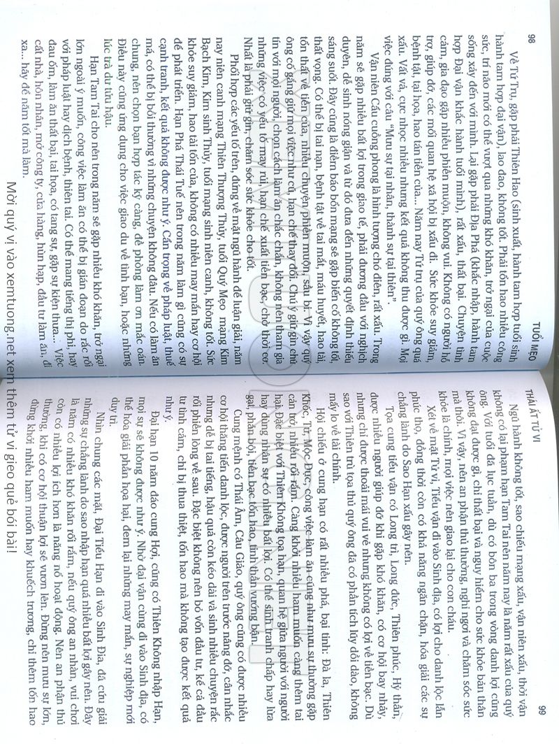 (Lưu ý: Thái Ất Tử Vi được chúng tôi scan từ sách, do đó mỗi tuổi sẽ có nhiều trang, quý vị xem xong hãy nhấn vào trang tiếp theo để xem hết phần tuổi muốn xem. Nếu quý vị xem bằng điện thoại thì hãy kéo qua lại để xem phần bị khuất.)