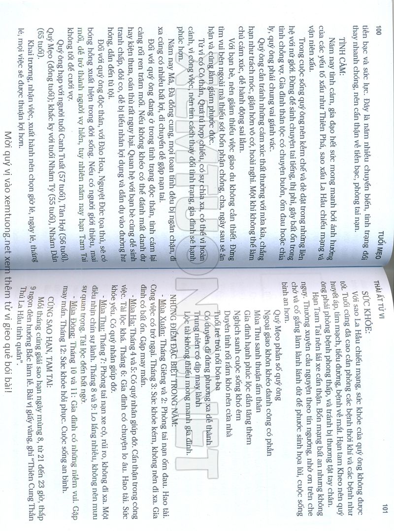 (Lưu ý: Thái Ất Tử Vi được chúng tôi scan từ sách, do đó mỗi tuổi sẽ có nhiều trang, quý vị xem xong hãy nhấn vào trang tiếp theo để xem hết phần tuổi muốn xem. Nếu quý vị xem bằng điện thoại thì hãy kéo qua lại để xem phần bị khuất.)