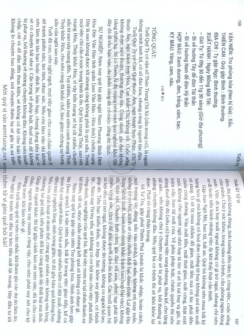 (Lưu ý: Thái Ất Tử Vi được chúng tôi scan từ sách, do đó mỗi tuổi sẽ có nhiều trang, quý vị xem xong hãy nhấn vào trang tiếp theo để xem hết phần tuổi muốn xem. Nếu quý vị xem bằng điện thoại thì hãy kéo qua lại để xem phần bị khuất.)